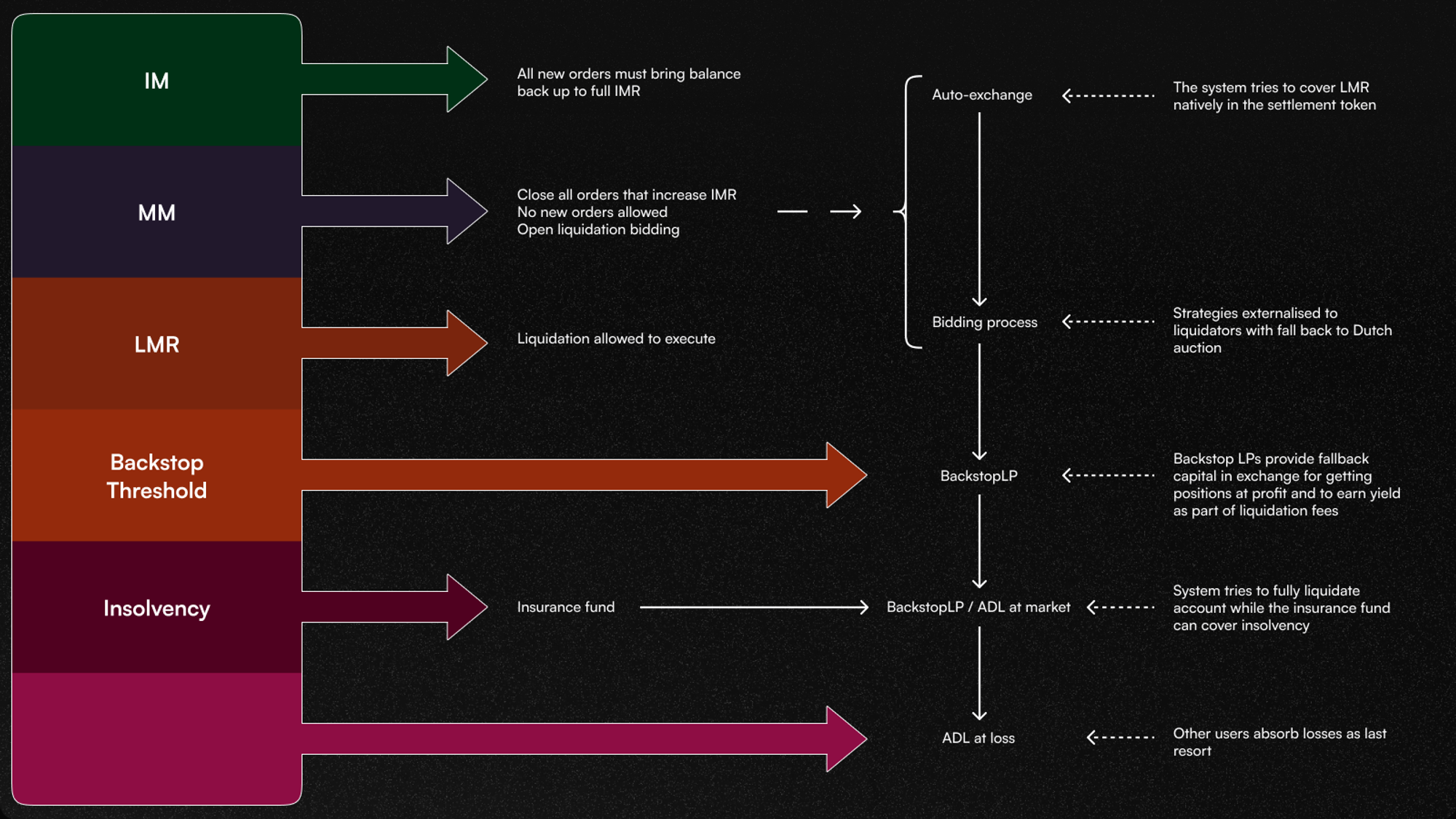 In other words, the waterfall serves as a series of backstops to ensure that the account can be fully liquidated while preserving the pool’s health.