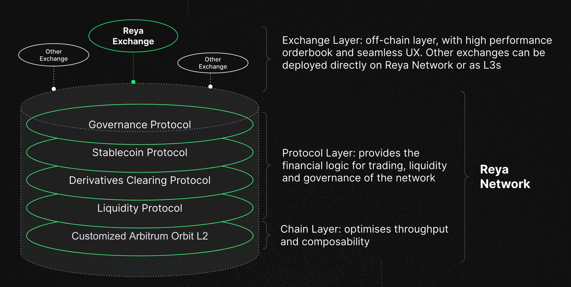 This is the cornerstone layer that makes holding value, settling payments and trading in a capital efficient manner possible on Reya Network. Importantly, the architecture is open, allowing other exchanges to integrate into the network too.